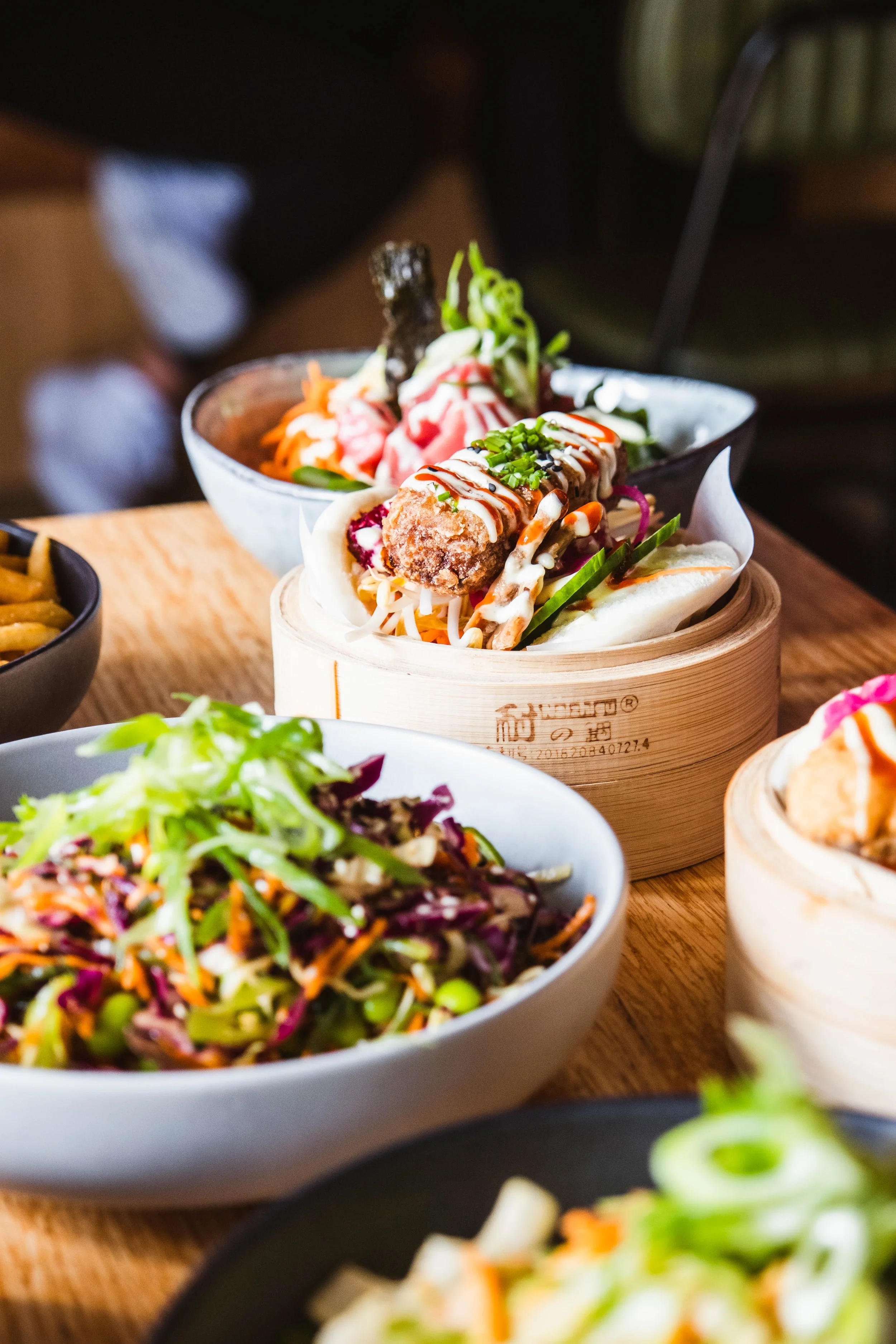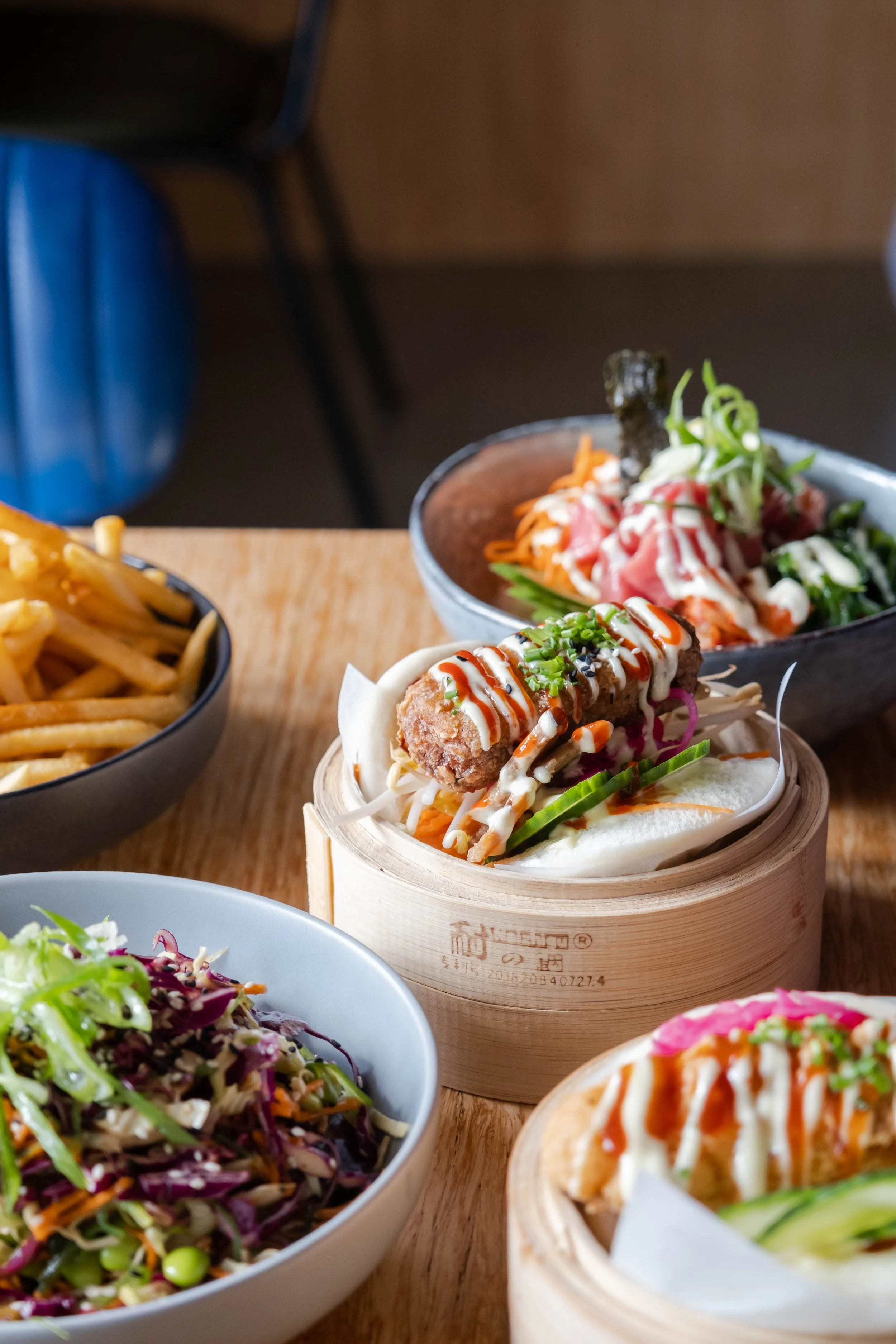 Indulge in our mouthwatering selection of baos, loaded fries, and sushi bowls, each crafted with high-quality ingredients for a truly delightful experience. Pair your meal with something refreshing from our fully stocked bar, and whether you’re dining in or taking out, Ditto has everything you need to satisfy every craving.
